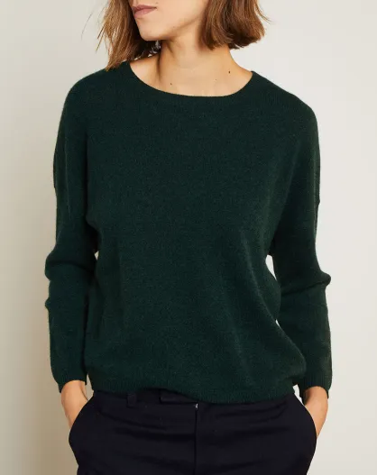 Pull en Laine & Cachemire Clémence Col rond vert foret