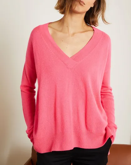 Pull ample 100% Cachemire Iris Col V rose fluo