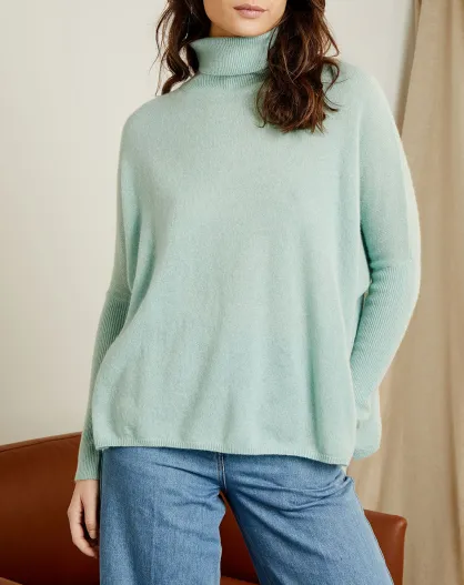 Pull poncho 100% Cachemire Olivia Col roulé amande