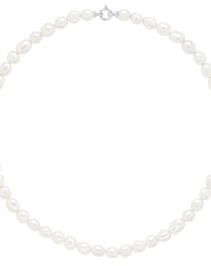 Collier Rang Princesse en Or Blanc & Perles de Culture d'Eau Douce Baroques blanc naturel