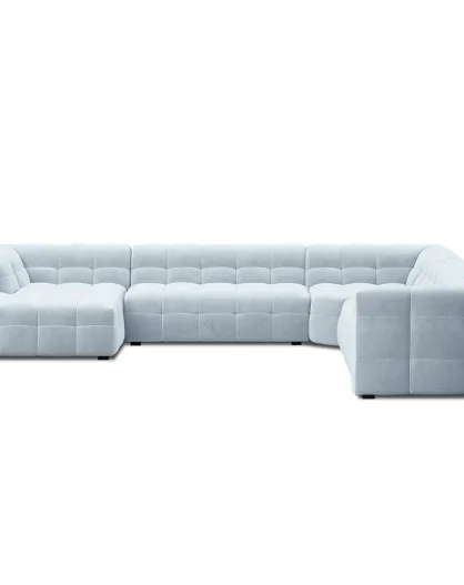 Canapé Panoramique Droit Velours Vesta 8 Places bleu clair - 366x273x69 cm