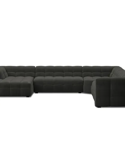 Canapé Panoramique Droit Velours Vesta 8 Places gris foncé - 366x273x69 cm