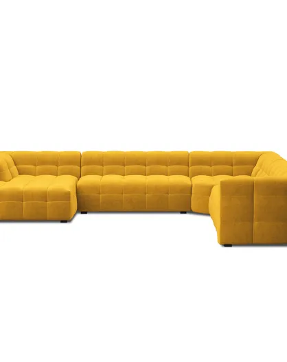 Canapé Panoramique Droit Velours Vesta 8 Places jaune - 366x273x69 cm
