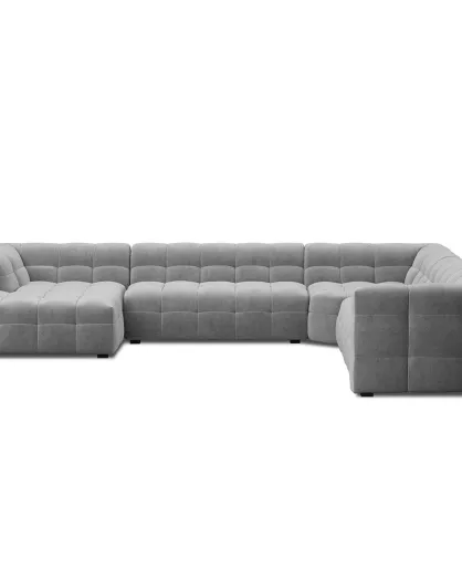 Canapé Panoramique Droit Velours Vesta 8 Places grise - 366x273x69 cm