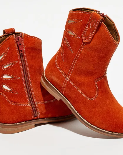 Bottines en Velours de Cuir Léa rouille