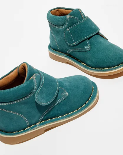 Bottillons en Velours de Cuir Pipou bleu atlantique