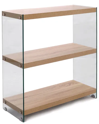Bibliothèque à trois étagères Nancy 75 bois/transparent - 81x75x29.5 cm