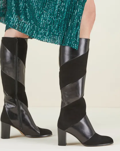 Bottes en Cuir et Velours de Cuir Cleha noires - Talon 7 cm