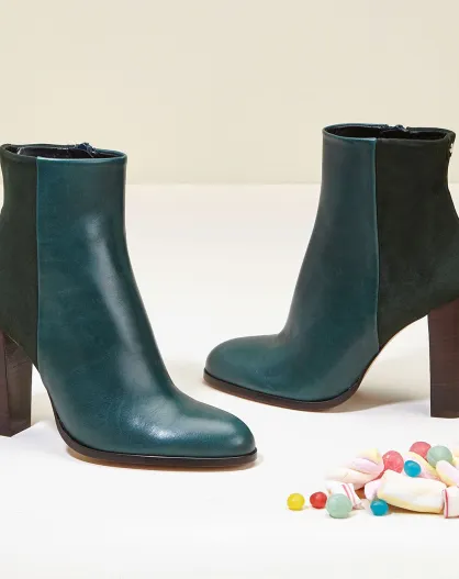 Bottines en Cuir et Velours de Cuir Cecillia forêt - Talon 11 cm