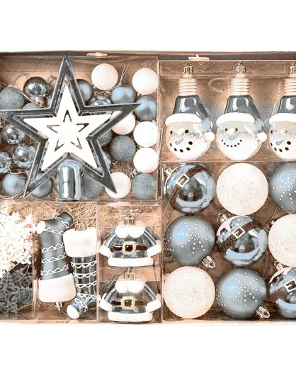 Set décoration sapin argenté - 71 pièces