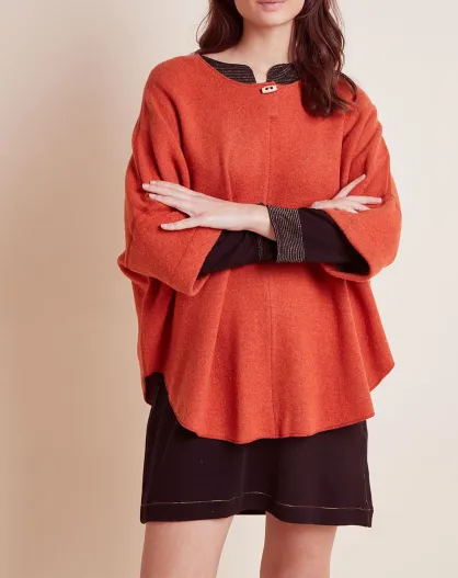 Poncho en Laine mélangée Etoffe cannelle/gris
