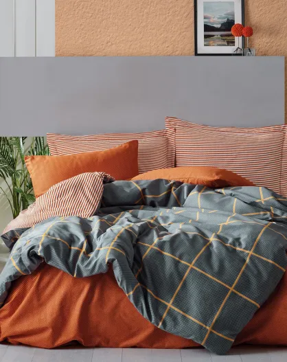 Parure housse de couette Stark canelle/bleu foncé