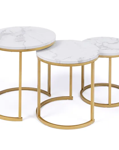 3 Tables basses rondes gigognes Glam marbre blanc/doré