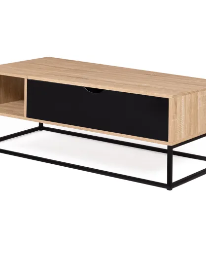 Table basse relevable Memphis avec rangements bois/noir - 110x55x44.5 cm