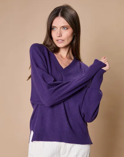 Pull 100% Cachemire 4 fils Romy col V profond violine