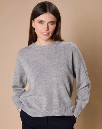 Pull 100% Cachemire 4 fils Ophélie col rond gris chiné foncé