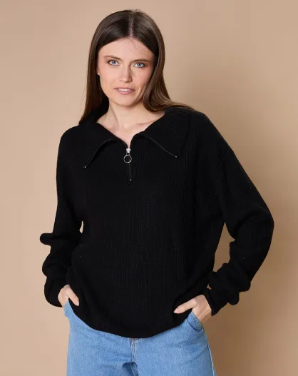 Pull en Laine & Cachemire mélangés Maia 1/2 zip noir