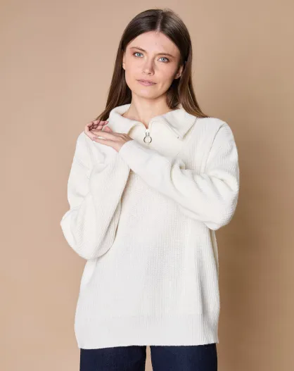 Pull en Laine & Cachemire mélangés Maia 1/2 zip écru