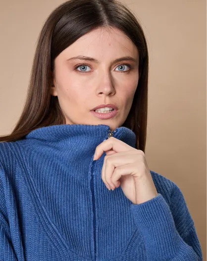 Pull en Laine & Cachemire mélangés Maia 1/2 zip bleu chiné