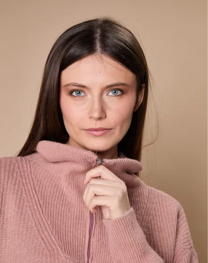 Pull en Laine & Cachemire mélangés Maia 1/2 zip vieux rose