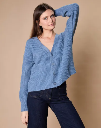 Cardigan en Laine & Cachemire mélangés Noémie bleu denim