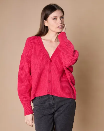 Cardigan en Laine & Cachemire mélangés Noémie rose vif