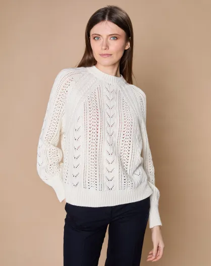 Pull en Mohair & Laine mélangés Paola col rond écru