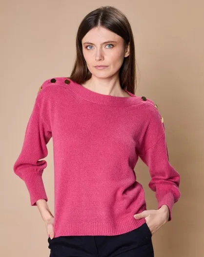 Pull 100% Cachemire 4 fils Jane col bateau fuchsia