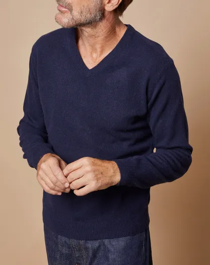Pull 100% Cachemire 4 fils Antoine col V bleu marine