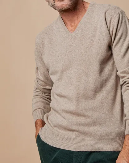 Pull 100% Cachemire 4 fils Antoine col V beige