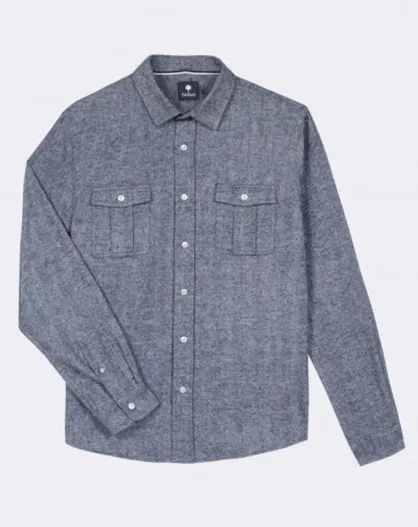 Chemise en Flanelle droite et ample Cerisy marine chiné