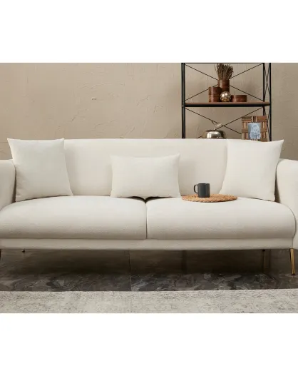 Canapé convertible 3 places Simena écru/doré - 210x80x95 cm