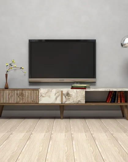 Meuble TV Milan noyer/blanc - 180x40x35 cm