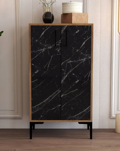 Meuble à chaussures Prag noyer/noir - 60x111x35 cm