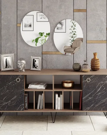 Buffet Kiev noyer/marbre noir - 160x78x35 cm