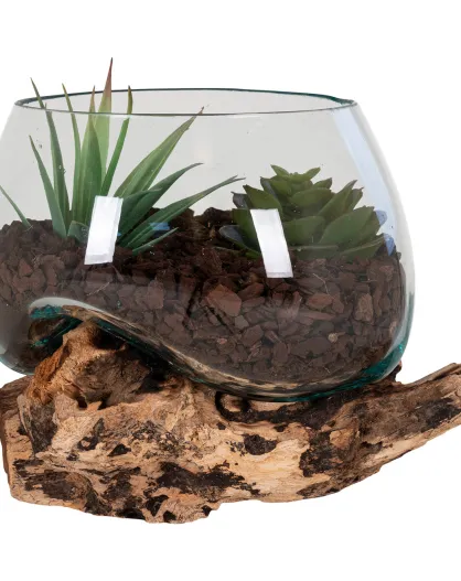 Goutte d'eau en teck et verre San Marino naturel - 26x26x20 cm