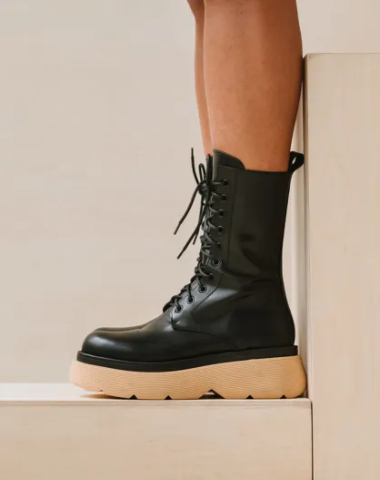 Boots en Cuir Romulus noir/miel - Talon 5 cm