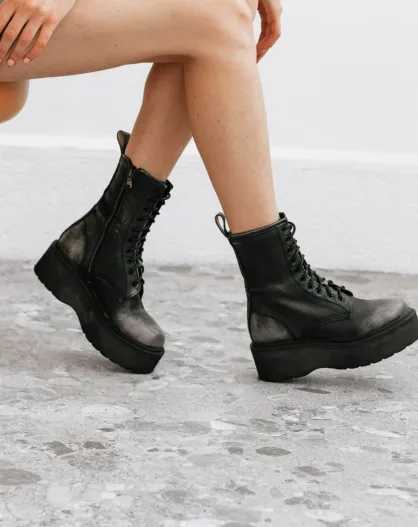 Boots en Cuir Romy effet usé grises - Talon 6 cm
