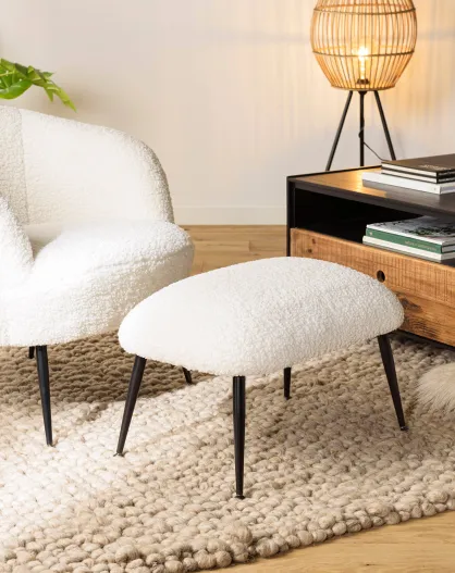 Tabouret cosy tissu bouclette Albane blanc - 60x40x40 cm