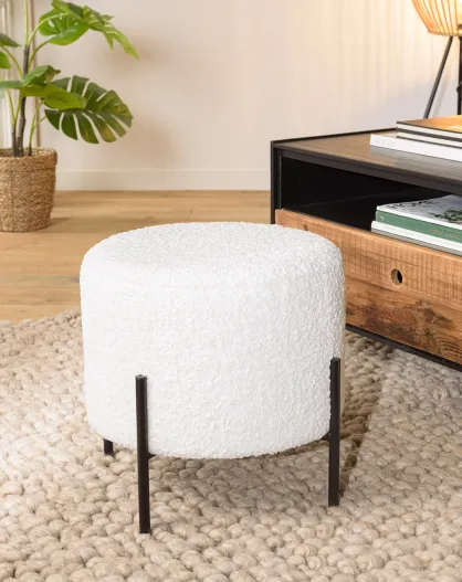Tabouret rond tissu bouclette Albane blanc - 40x40 cm