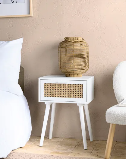 Chevet cannage rotin Sandro blanc - 40x30x55 cm