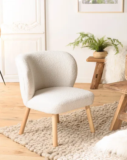 Fauteuil en tissu bouclette Albane blanc - 61x58x68 cm