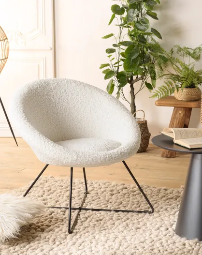 Fauteuil bouclette pieds croisés Albane blanc - 72x64x69 cm