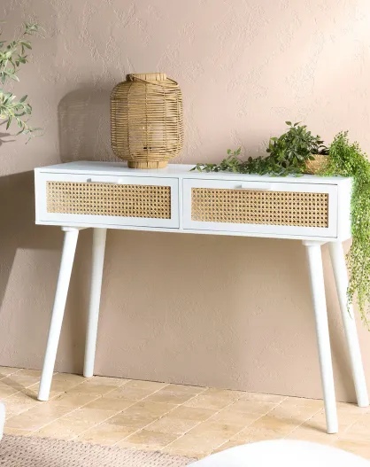 Console cannage rotin Sandro blanche - 110x33x81 cm