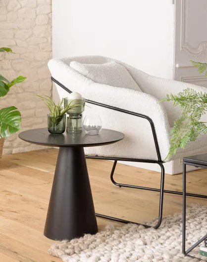 Table d'appoint ronde pied conique métal Daly noire - 50x50 cm