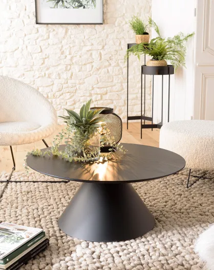 Table basse ronde pied conique métal Daly noire - 78x78 cm