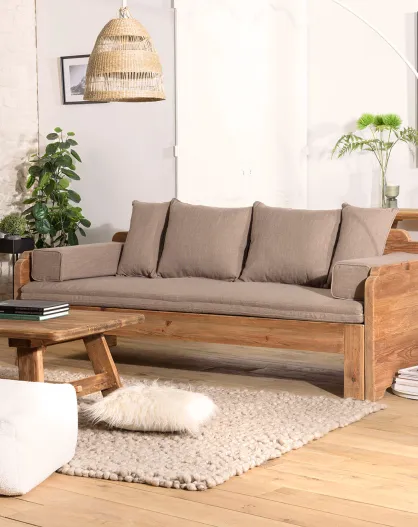 Canapé-lit pin recyclé 3 places avec coussins Andrian marron - 210x90x73 cm
