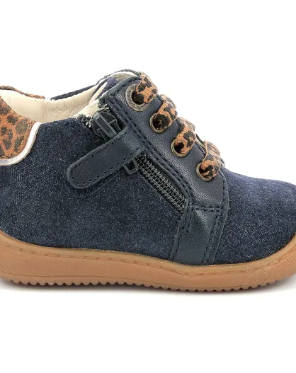 Sneakers Hautes en Velours de Cuir Bloye marine/léopard