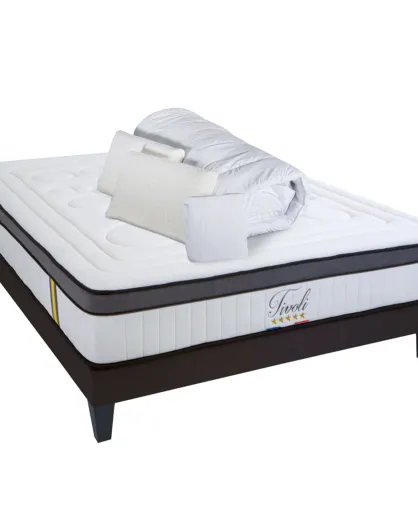 Pack Prêt à Dormir Tivoli Matelas + Sommier + Accessoires blanc - 180x200 cm