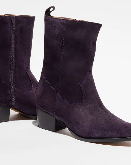 Boots en Velours de Cuir Océane violine